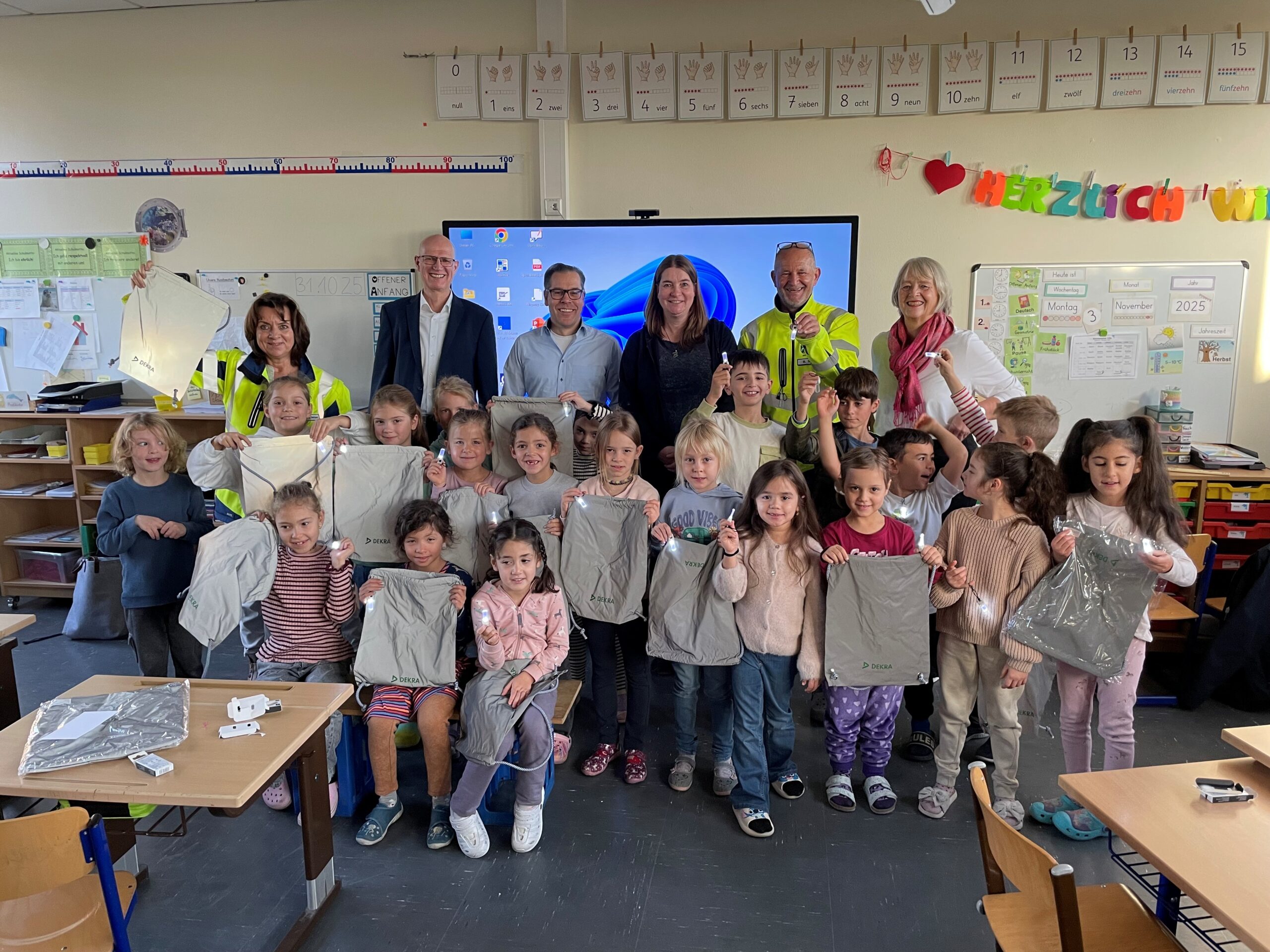 Dank der Unterstützung der DEKRA Langenfeld, vertreten durch Herrn Jochen Hof, erhielten alle Schülerinnen und Schüler zusätzlich reflektierende Sportbeutel – ein weiterer Beitrag für gute Sichtbarkeit im Straßenverkehr.